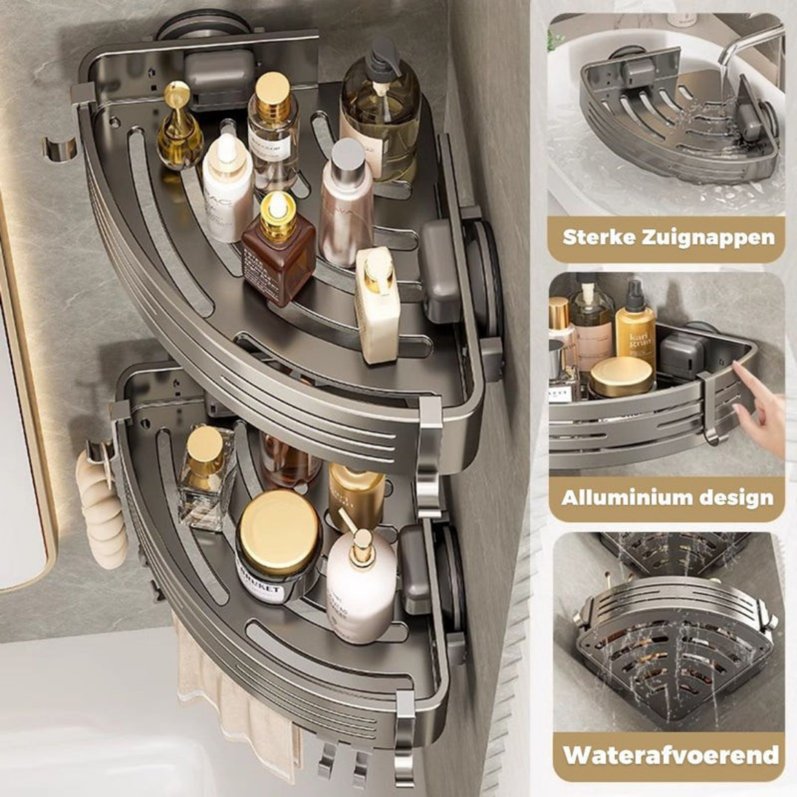 Stevig en betrouwbaar: Houdt flessen, zeep en accessoires stabiel op hun plaats, zelfs in vochtige ruimtes.